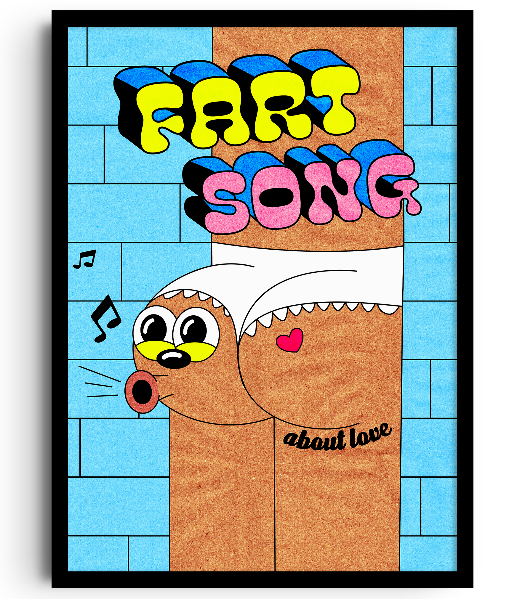 A ballad from the backdoor — pure romance in cartoon form. Cheeks out, lips puckered, singing love notes no one asked for. Ovcharka turns bathroom humor into pop art: bright, shameless, and impossible to ignore. Hang it proudly, let the walls laugh with you.